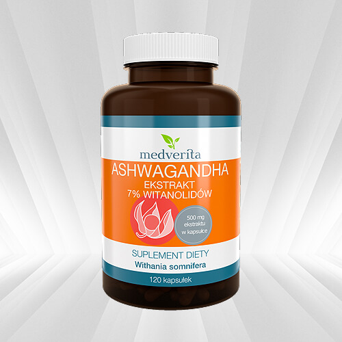 Ashwagandha, czyli witania ospała lub indyjski żeń-szeń to roślina, która jest źródłem wielu substancji aktywnych m.in cennych witanolidów. Preparat zawiera wyciąg z korzenia witanii ospałej standaryzowany na obecność 7% witanolidów. Substancję czynną uzyskano drogą ekstrakcji korzenia rośliny.