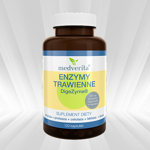 DigeZyme® to kompleks 5 enzymów trawiennych nie będących pochodzenia zwierzęcego, a uzyskanych za pomocą procesu fermentacji. Ten wieloenzymatyczny kompleks jest produktem firmy Sabinsa Corporation, którego jakość została potwierdzona licznymi badaniami klinicznymi.
