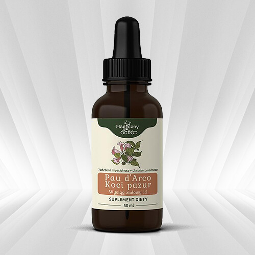 Oryginalne połączenie dwóch roślin pochodzących z Ameryki Południowej, działających synergicznie. Jako surowiec zielarski wykorzystuje się korę Pau d’Arco i kociego pazura (Vilcacora). Najważniejsze substancje aktywne to lapachol, triterpeny, glikozydy i flawonoidy. Ceniona jako uzupełnienie diety przy boreliozie. W wygodnej i bardzo dobrze przyswajalnej formie nalewki. Mieszanka znajduje swoje zastosowanie również przy: wzmocnieniu odporności, stawów, obniżeniu stresu i napięcia, wsparciu prostaty i dróg moczowych, oraz usprawnieniu krążenia.