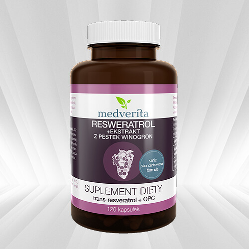 Preparat zawiera ekstrakt z Rdestu Japońskiego o wysokim stężeniu, w każdej kapsułce znajduje się aż 100 mg czystego Resweratrolu.