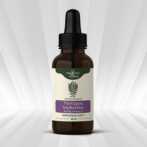 Korzeń Tarczycy bajkalskiej, certyfikowany alkohol etylowy, woda destylowana, gliceryna roślinna. Zawartość etanolu w nalewce: 35 –45%