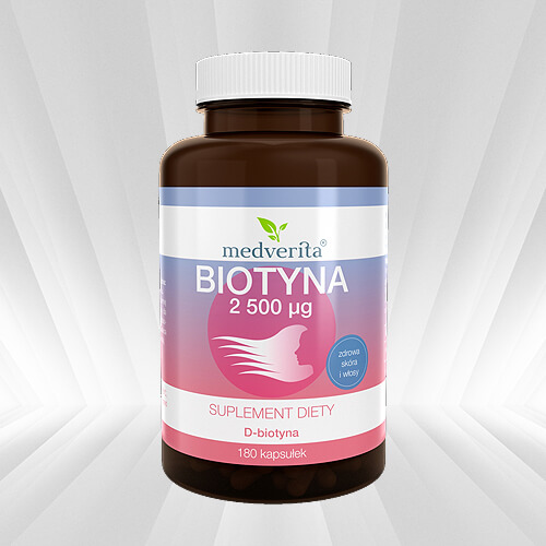 Porcja zalecana do spożycia w ciągu dnia: biotyna - 2500 µg (5000% RWS*)